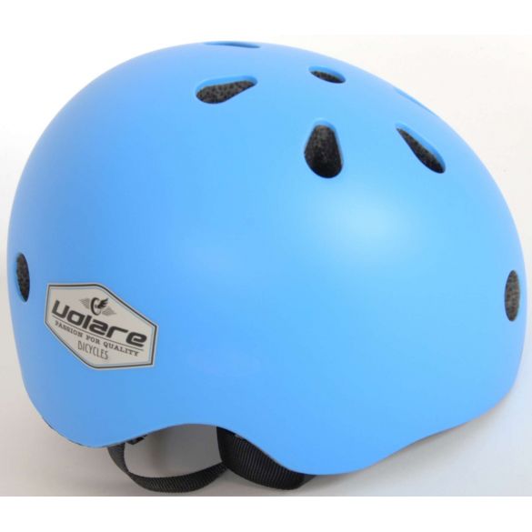 Volare Kinder-Fahrradhelm Blau. Bereit für ein aufregendes Abenteuer? Dann ist dieser Helm Ihr bester Kumpel. Er bietet nicht nur die beste Sicherheit, sondern sieht mit seiner schönen blau Farbe auch noch cool aus. Dieser Helm ist im Kopfumfang von 45 bis 51 Zentimeter verstellbar und auch der Kinnriemen ist verstellbar.