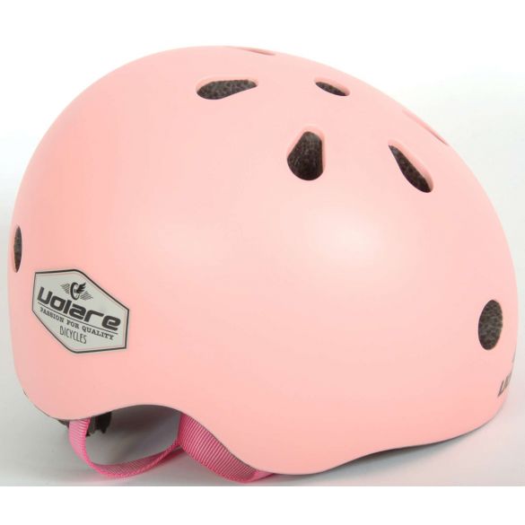 Volare Kinder-Fahrradhelm Zartrosa. Bereit für ein aufregendes Abenteuer? Dann ist dieser Helm Ihr bester Kumpel. Er bietet nicht nur die beste Sicherheit, sondern sieht mit seiner schönen zartrosa Farbe auch noch cool aus. Dieser Helm ist im Kopfumfang von 45 bis 51 Zentimeter verstellbar und auch der Kinnriemen ist verstellbar.