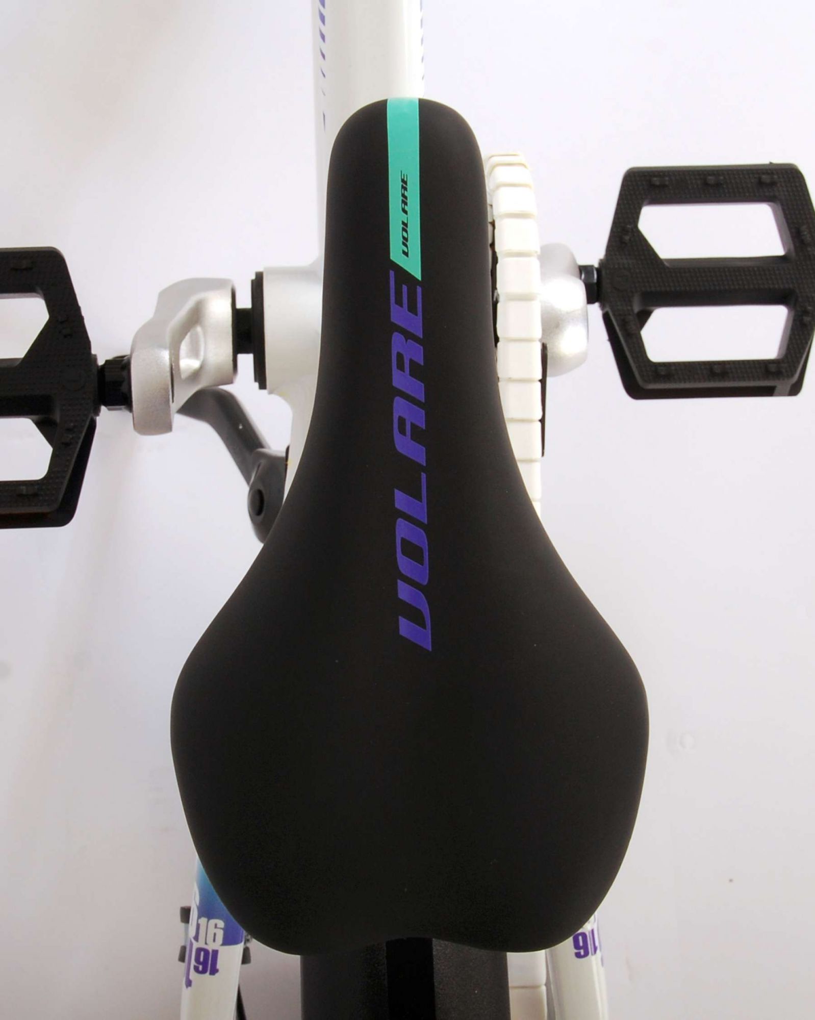 Sicherheit geht vor! Deshalb hat dieses coole Fahrrad eine Handbremse, eine Rücktrittbremse und einen Kettenspanner. Außerdem hat das Fahrrad Reflektoren in den Pedalen und eine schöne Klingel. Auch an den Komfort wurde gedacht. Das schöne weiße Volare mit mintgrünen Akzenten hat einen extraleichten Aluminiumrahmen (nur 6,5 Kilo!), einen bequemen, weichen Sattel, Craton-Griffe und einen stabilen Ständer, damit Ihr Fahrrad immer ordentlich steht. Um möglichst lange Freude an dem Fahrrad zu haben, ist es mit einer extra langen Sattelstütze ausgestattet, so dass das Fahrrad noch länger mit dem Kind mitwächst (der Lenker ist nicht höhenverstellbar). Kurz gesagt: ein hochwertiges Fahrrad zu einem tollen Preis! Kurzum: ein hochwertiges Fahrrad, an dem Ihr Kind jahrelang Freude haben wird!
