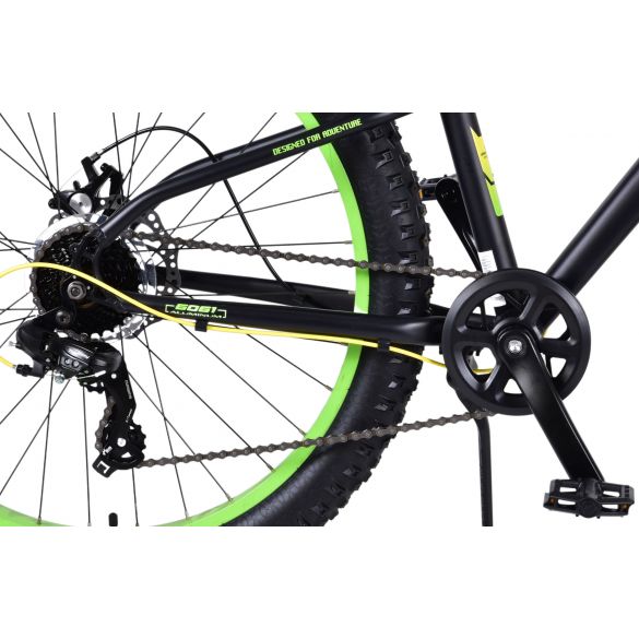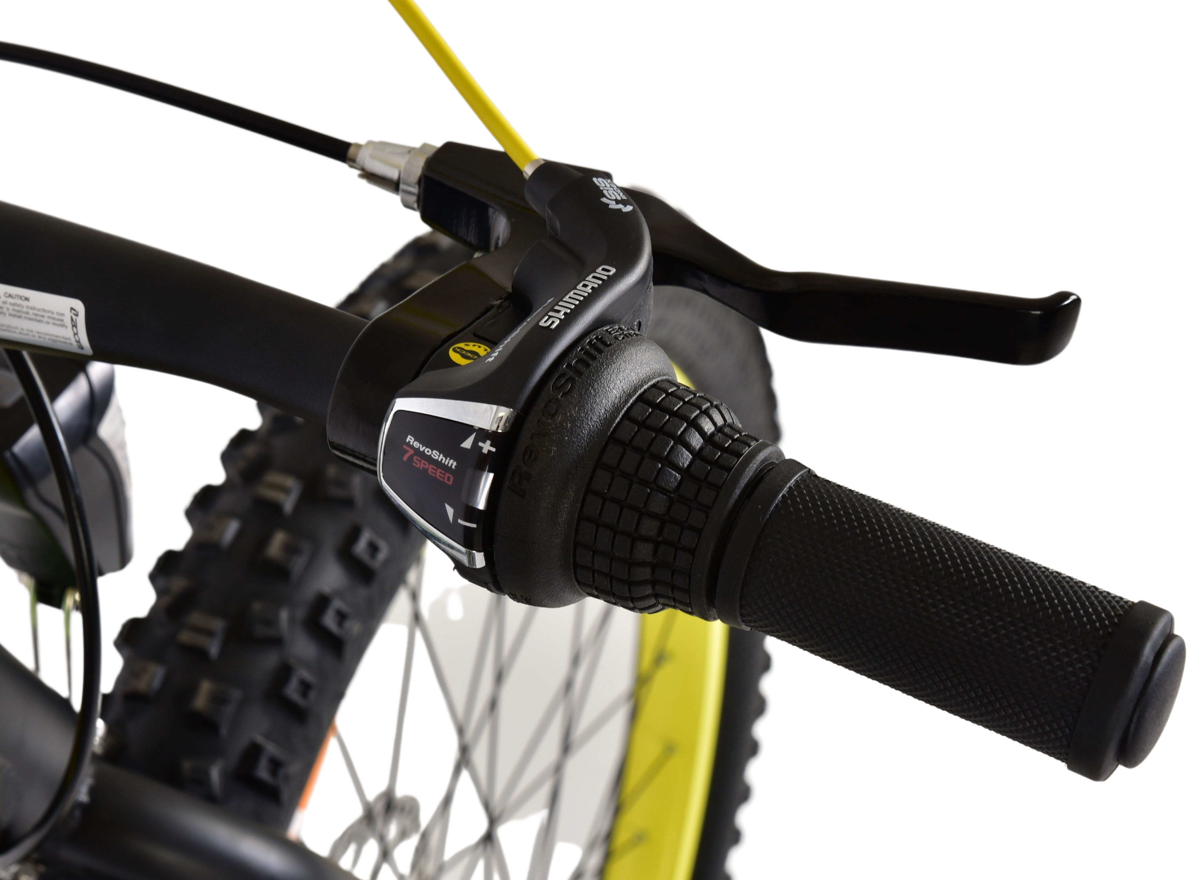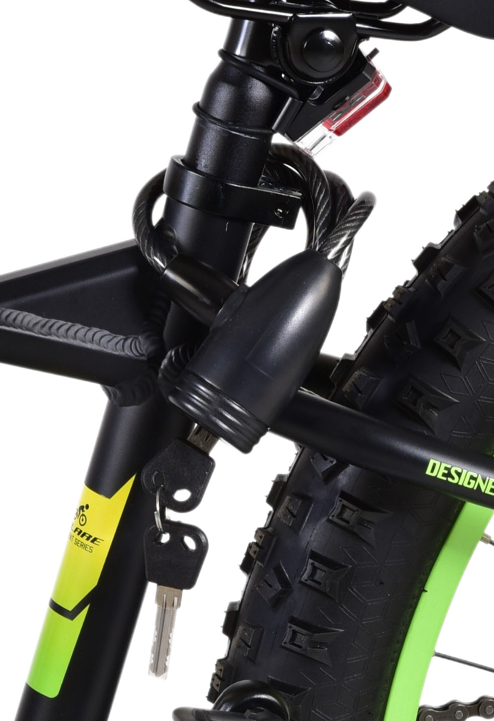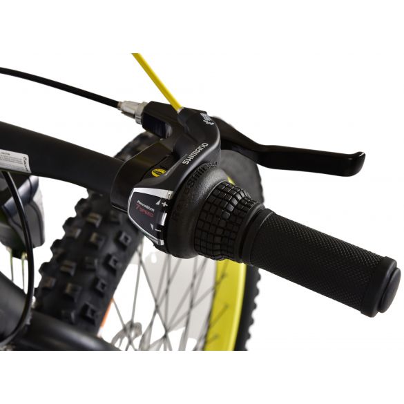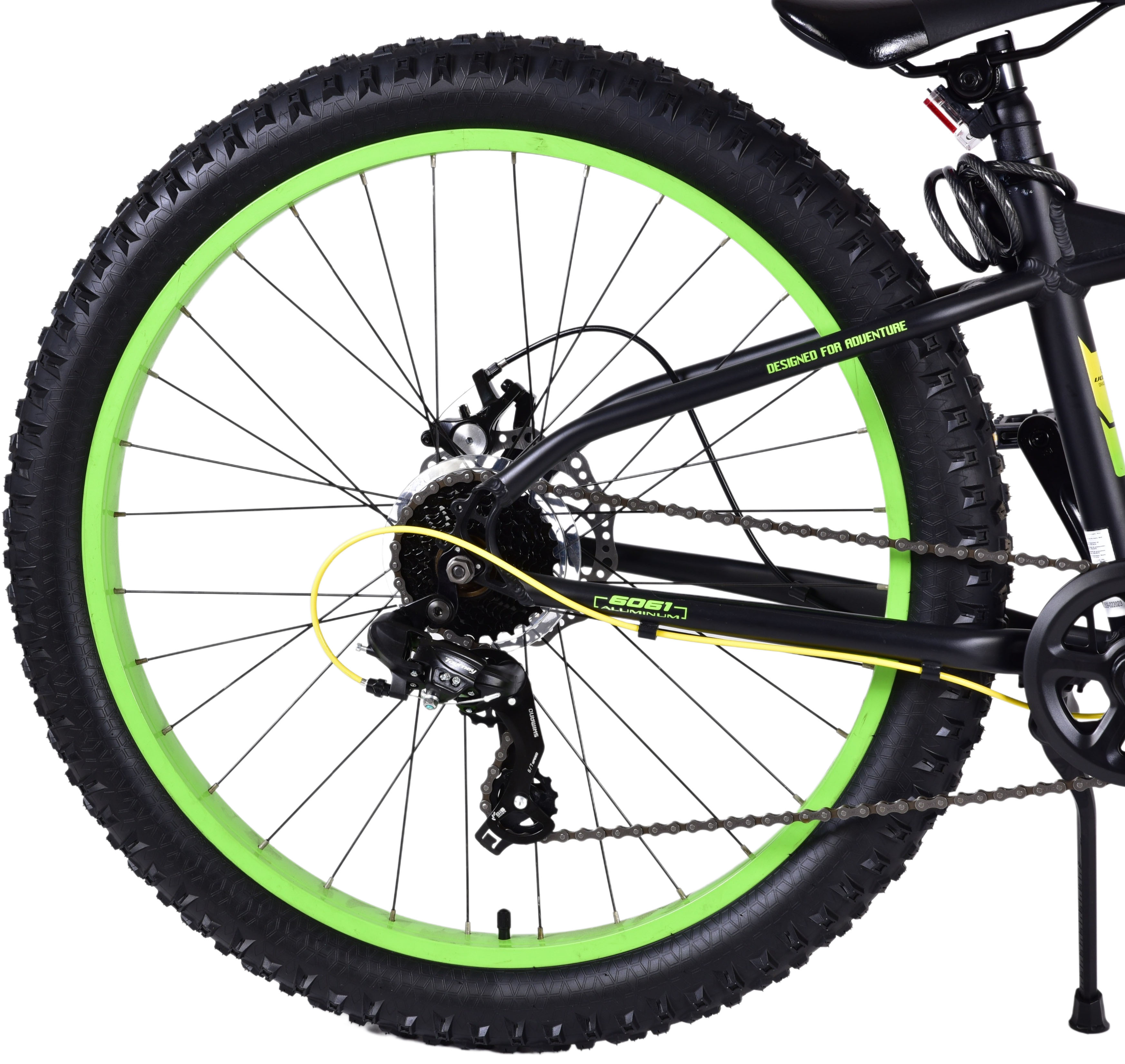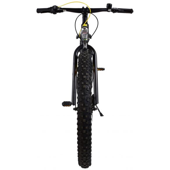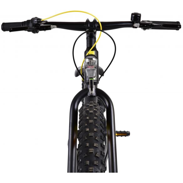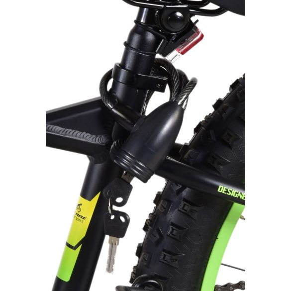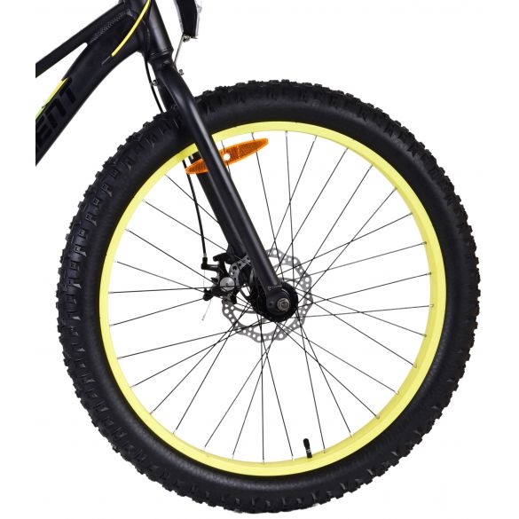 Sicherheit geht vor! Deshalb hat dieses coole Fahrrad auch keine Rücktrittbremse, sondern zwei Handbremsen. Außerdem ist das Fahrrad mit Vorder- und Rücklicht, einem stabilen Schloss und einer Klingel ausgestattet. Der geneigte Lenkervorbau ermöglicht eine bessere Sicht auf die Straße, ist aber nicht höhenverstellbar. Auch an den Komfort wurde gedacht. Das schöne schwarze Volare-Fahrrad mit gelben und grünen Akzenten hat einen extra leichten Aluminiumrahmen, einen Ständer, damit Ihr Fahrrad ordentlich an seinem Platz bleibt, extra breite Reifen, 7 Gänge und weiche Griffe aus Kraton. Damit Sie möglichst lange Freude an Ihrem Fahrrad haben, ist der Sattel höhenverstellbar.