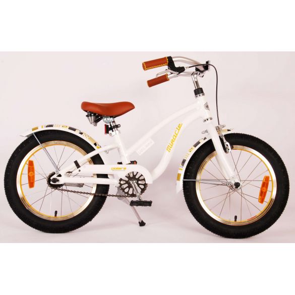 Wir haben auch an den Komfort gedacht. Das schöne weiße Miracle Fahrrad hat einen extra leichten Aluminiumrahmen, einen Ständer, damit Ihr Fahrrad ordentlich bleibt, und einen bequemen weichen Sattel. Damit Sie so lange wie möglich Freude an Ihrem Fahrrad haben, sind Sattel und Lenker höhenverstellbar.