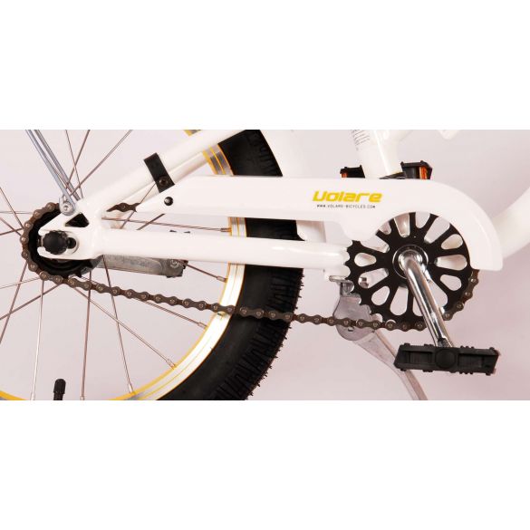Sicherheit geht vor! Deshalb hat dieses coole Fahrrad einen geschlossenen Kettenschutz, um die Finger zu schützen. Das Fahrrad hat auch Reflektoren in den Pedalen. Dieses Fahrrad hat eine Rücktrittbremse und eine Handbremse.