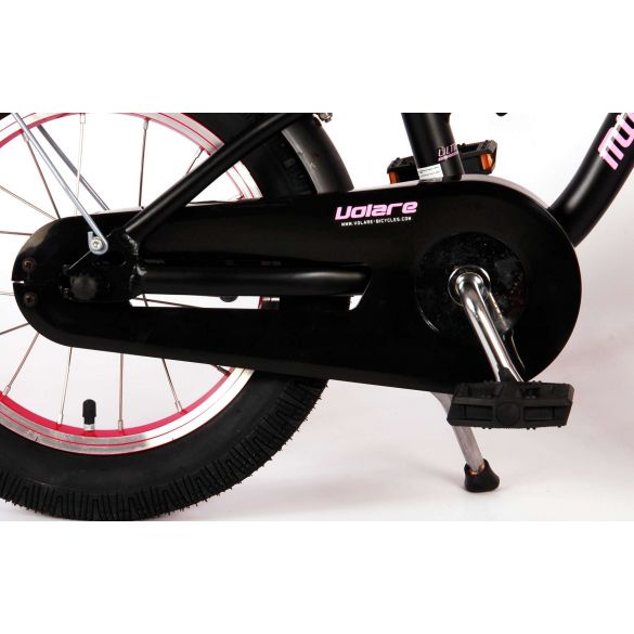 Sicherheit geht vor! Deshalb hat dieses coole Fahrrad einen geschlossenen Kettenschutz, um die Finger zu schützen. Das Fahrrad hat auch Reflektoren in den Pedalen. Dieses Fahrrad hat eine Rücktrittbremse und eine Handbremse.