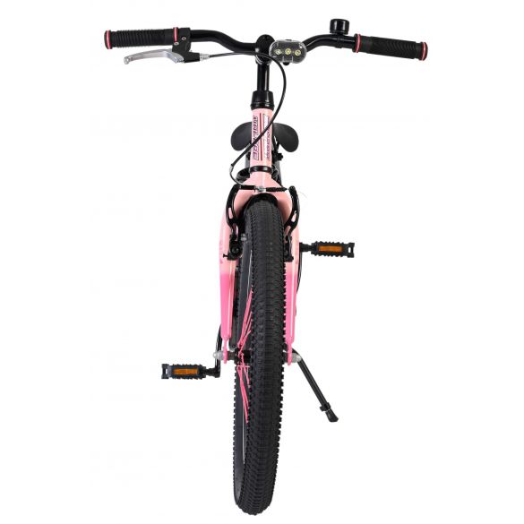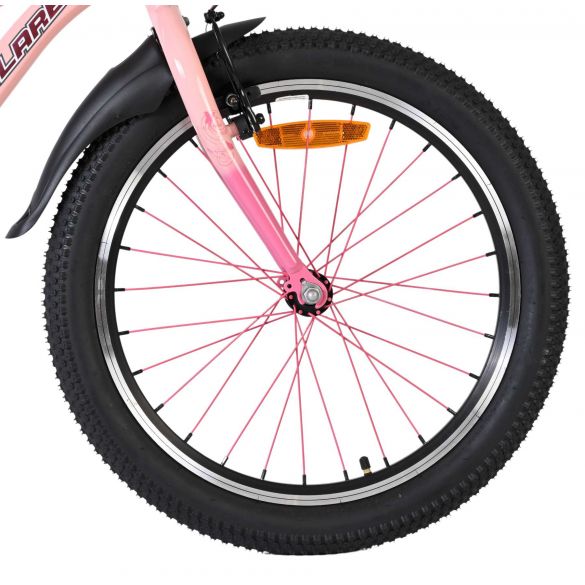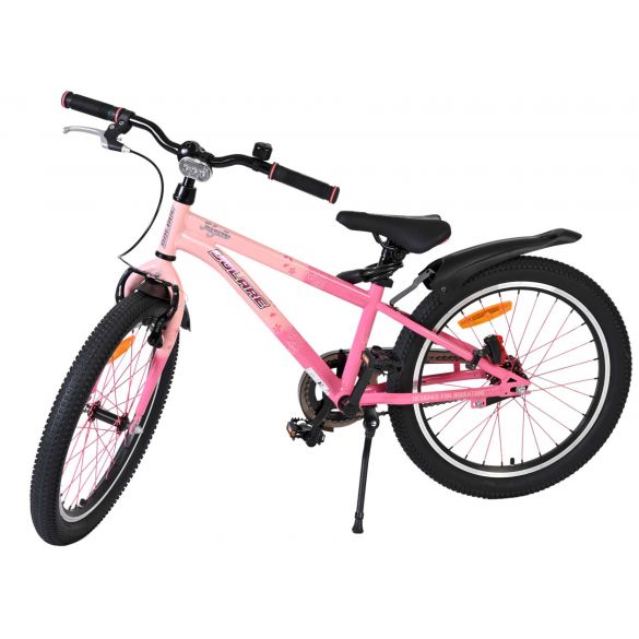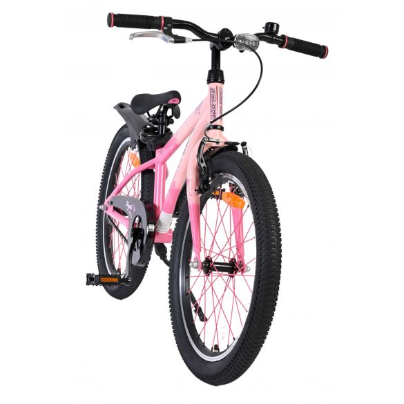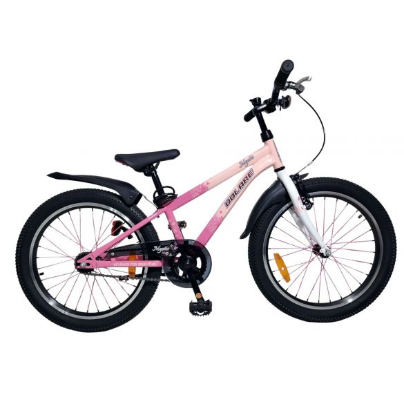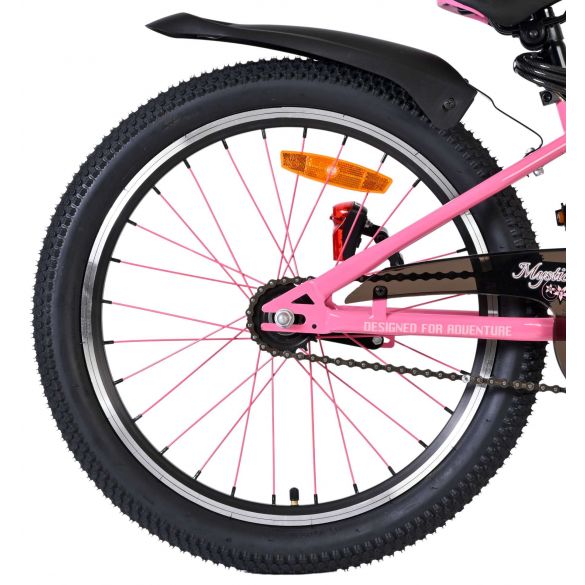 Dankzij de verlichting aan de voor- en achterkant is je kind ook goed zichtbaar in het donker of bij slecht weer. Het sportieve karakter van de Volare Mystic wordt versterkt door de roze spaken, die de fiets een unieke en opvallende uitstraling geven. Voor extra gemak en veiligheid is de fiets voorzien van een slot en een duidelijke bel.