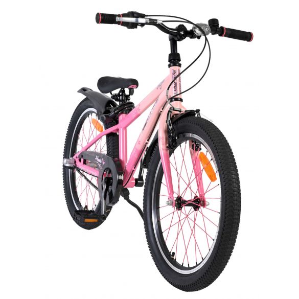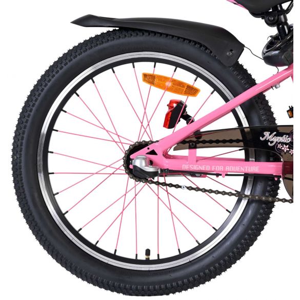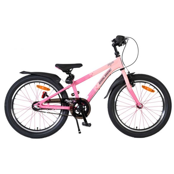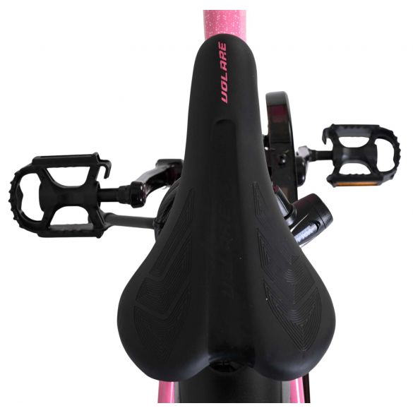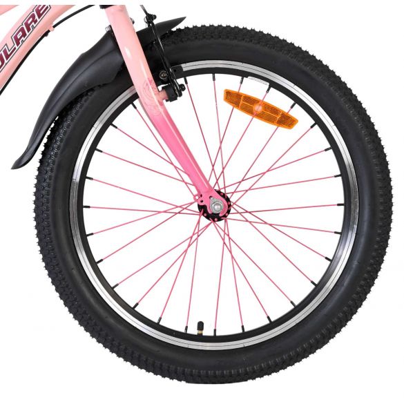 De Volare Mystic is voorzien van verlichting aan de voor- en achterkant en reflectoren in de wielen, wat zorgt voor goede zichtbaarheid in het verkeer. Het sportieve karakter wordt extra benadrukt door de opvallende roze spaken, die de fiets een unieke uitstraling geven. Daarnaast beschikt de fiets over een slot en een bel, zodat je kind veilig en goed voorbereid op pad kan.