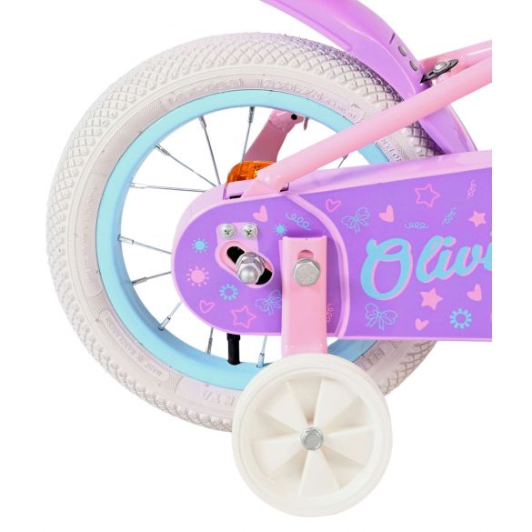 De Volare Olivia 12 inch kinderfiets is een schattige en stijlvolle fiets voor jonge meiden die hun eerste fietservaringen gaan opdoen. Met haar zachte roze kleur, paarse handvaten, zadel en spatborden is deze fiets een echte blikvanger.