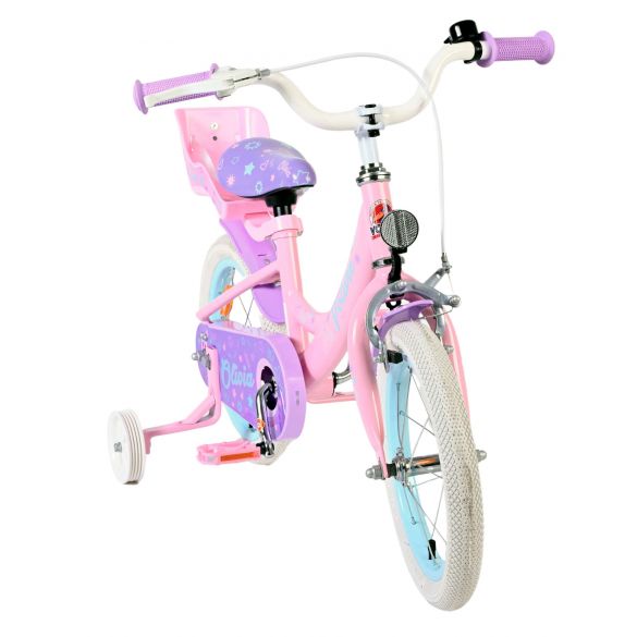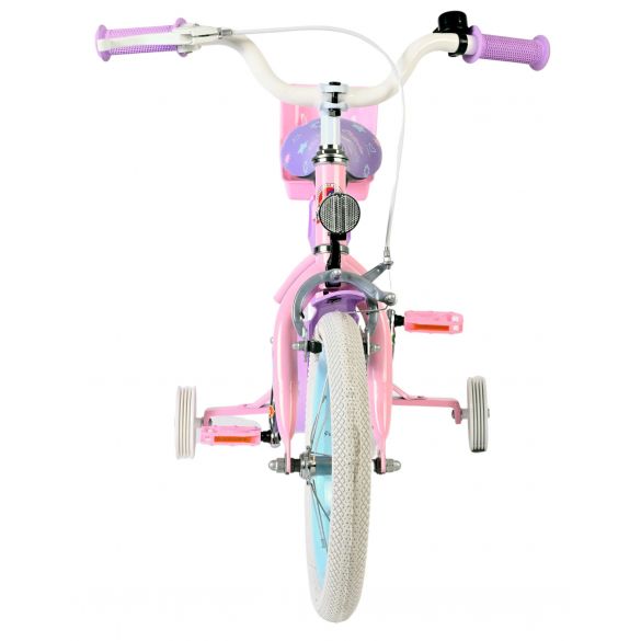 De afneembare zijwieltjes helpen kinderen stap voor stap leren fietsen, en zodra ze klaar zijn om zelfstandig te rijden, kunnen de zijwielen eenvoudig worden verwijderd. Achterop de fiets zit een leuk poppenzitje, zodat de favoriete pop altijd mee kan op avontuur. Het zadel en stuur zijn in hoogte verstelbaar, zodat de fiets met je kind meegroeit. Daarnaast is de fiets voorzien van een bel, zodat iedereen weet dat er een trotse kleine fietser aankomt.