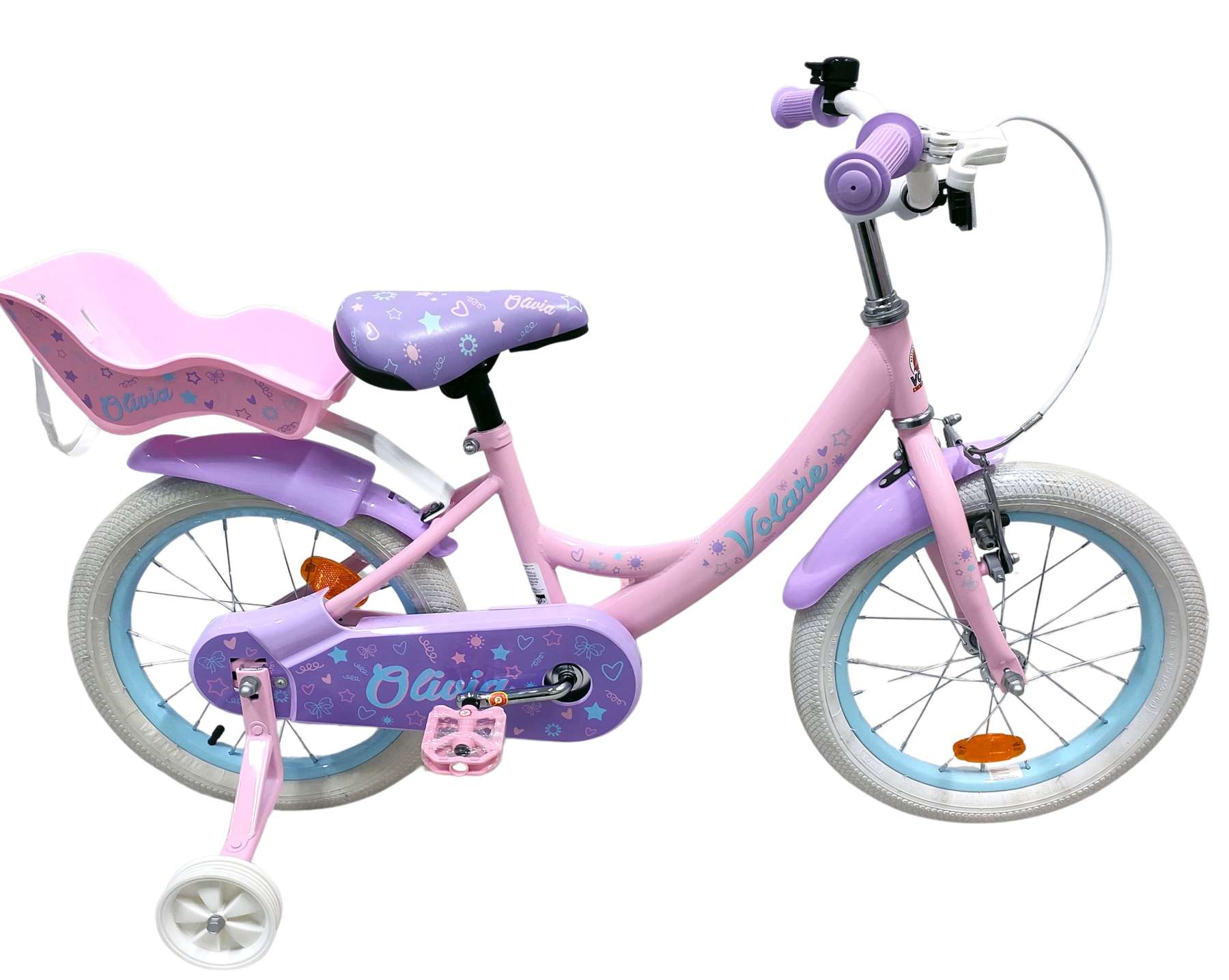 De Volare Olivia 16 inch kinderfiets is een schattige en stijlvolle fiets voor jonge meiden die vol trots willen fietsen. Met haar zachte roze kleur, paarse handvaten, zadel en spatborden is deze fiets een echte blikvanger.