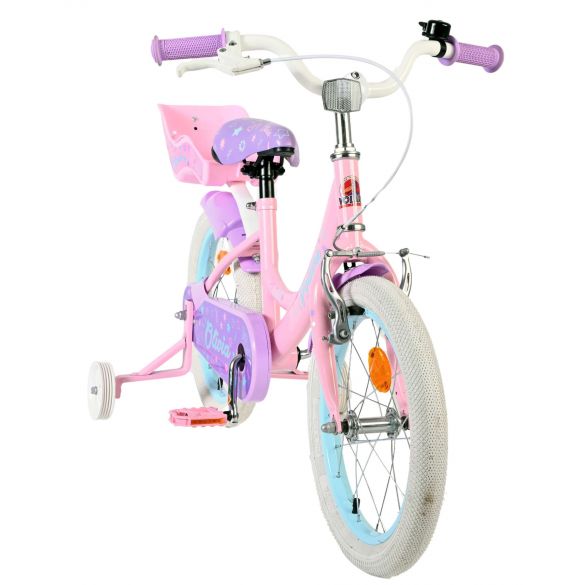 De afneembare zijwieltjes helpen kinderen stap voor stap leren fietsen, en zodra ze klaar zijn om zelfstandig te rijden, kunnen de zijwielen eenvoudig worden verwijderd. Achterop de fiets zit een leuk poppenzitje, zodat de favoriete pop altijd mee kan op avontuur. Het zadel en stuur zijn in hoogte verstelbaar, zodat de fiets met je kind meegroeit. Daarnaast is de fiets voorzien van een bel, zodat iedereen weet dat er een trotse kleine fietser aankomt.