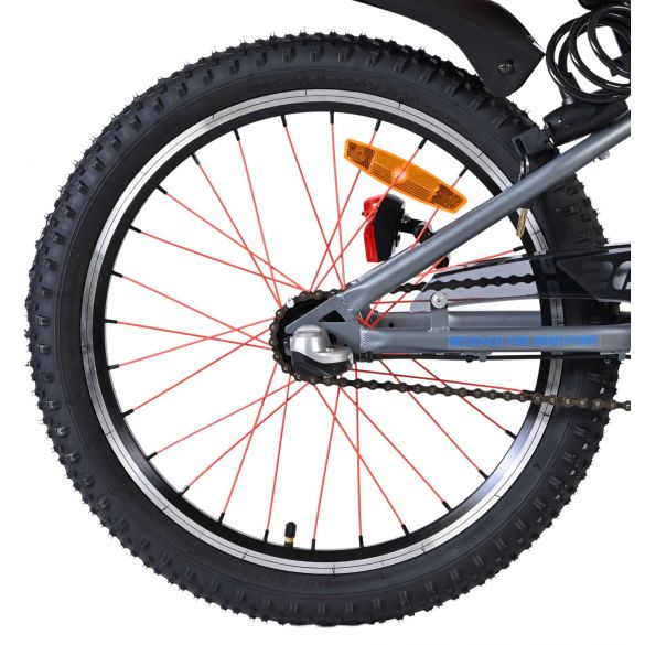 Op zoek naar de perfecte fiets voor je kind? De 20 inch kinderfiets in stoere blauw-grijze kleur biedt alles wat je zoekt. Het sportieve design met gekleurde spaken geeft de fiets een speelse uitstraling, terwijl de stevige standaard en de reflectoren in de wielen zorgen voor extra veiligheid, ook in het donker. Dankzij het verstelbare zadel groeit de fiets gemakkelijk mee, zodat je kind er jarenlang plezier van heeft.
