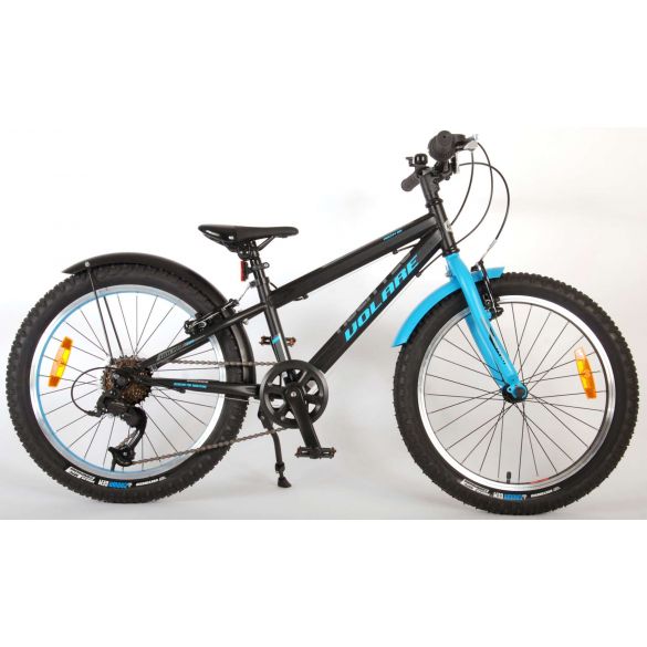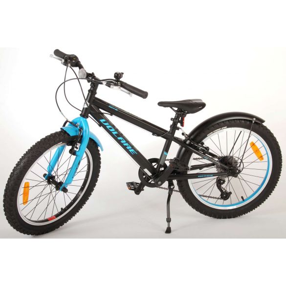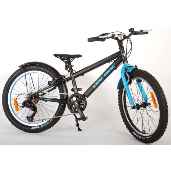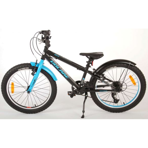 Sicherheit geht vor! Deshalb hat dieses coole Fahrrad auch keine Rücktrittbremse, sondern zwei Handbremsen. Darüber hinaus hat das Fahrrad StVO-geprüfte Lichter vorne und hinten, Licht, ein praktisches Schloss, und eine schöne Klingel. Auch der Komfort spielt eine Rolle. Das schöne satinschwarze Volare Fahrrad mit blauen Akzenten hat einen extra leichten Aluminiumrahmen, einen bequemen, weichen Sattel, 6 Gänge, einen Ständer, um Ihr Fahrrad an Ort und Stelle zu halten, und robuste, extra breite Reifen. Um möglichst lange Freude am Fahrrad zu haben, hat das Fahrrad eine extra lange Sattelstütze, so dass das Fahrrad noch länger wird.