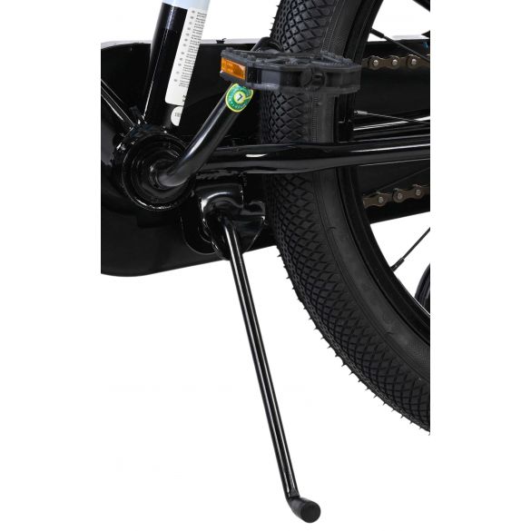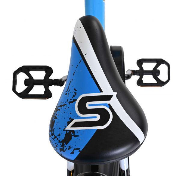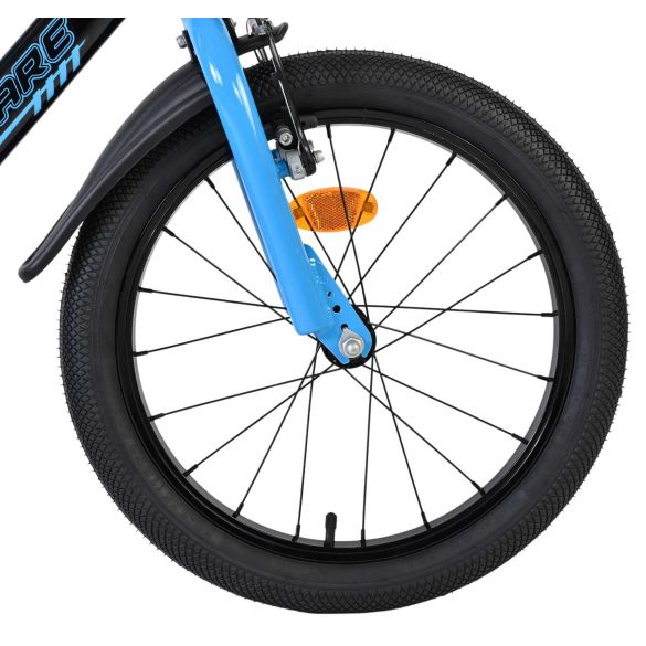 Sicherheit steht an erster Stelle! Der stabile Stahlrahmen sieht mit der coolen blau/schwarzen Farbgebung sehr sportlich aus. Mit der Wasserflasche im praktischen Flaschenhalter hat Ihr Kind immer etwas zu trinken dabei. Die Schutzbleche halten den ganzen spritzenden Schmutz ab. Um die Geschwindigkeit zu reduzieren, verfügt das Fahrrad über Hand- und Rücktrittbremsen. Um kleine Finger zu schützen, ist der Kettenschutz geschlossen. Mit dem praktischen Ständer steht das Fahrrad immer ordentlich.