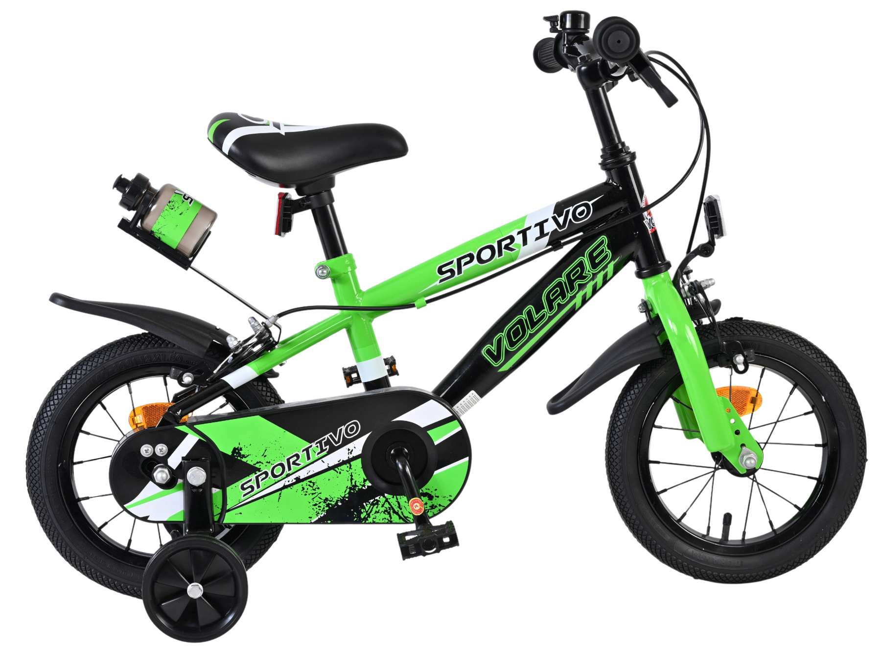 Veiligheid staat voorop! Daarom heeft deze gave fiets een gesloten kettingkast ter bescherming van de vingers. Deze fiets heeft GEEN terugtraprem maar twee handremmen! en afneembare zijwieltjes. Ook aan het comfort is gedacht. De mooie groene Volare fiets heeft een bidonhouder met bidon. Om zo lang mogelijk van de fiets te kunnen genieten zijn het zadel en stuur in hoogte verstelbaar.