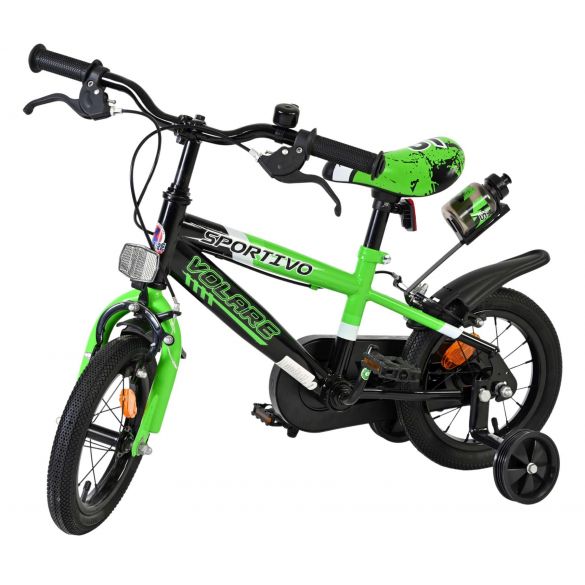 Veiligheid staat voorop! Daarom heeft deze gave fiets een gesloten kettingkast ter bescherming van de vingers. Deze fiets heeft GEEN terugtraprem maar twee handremmen! en afneembare zijwieltjes. Ook aan het comfort is gedacht. De mooie groene Volare fiets heeft een bidonhouder met bidon. Om zo lang mogelijk van de fiets te kunnen genieten zijn het zadel en stuur in hoogte verstelbaar.