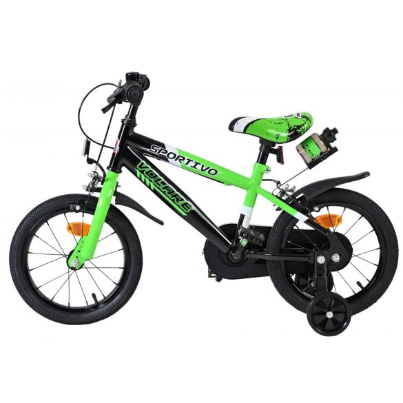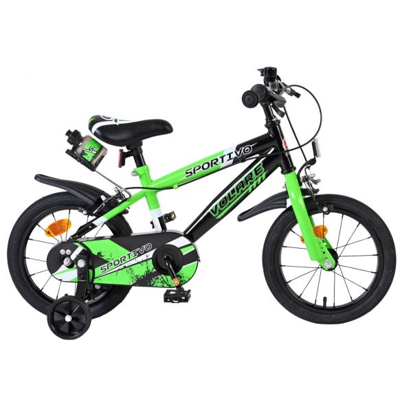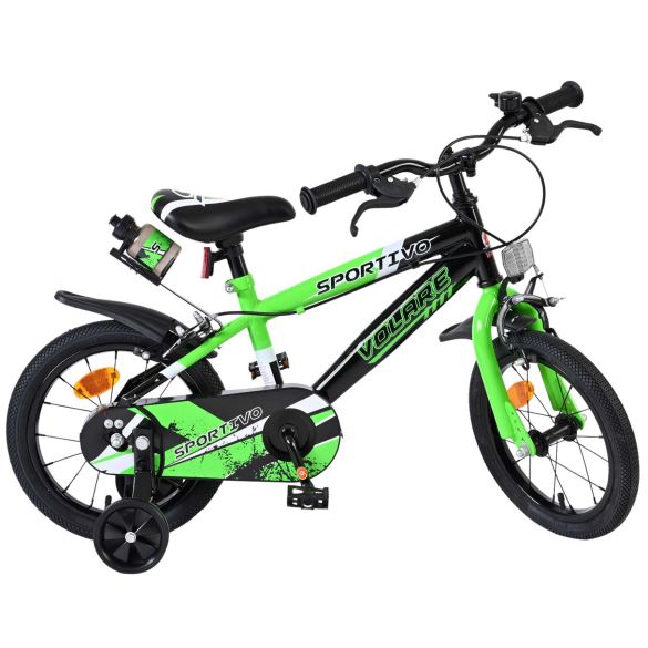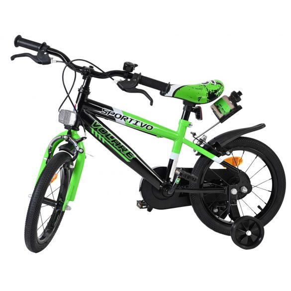 Veiligheid staat voorop! Daarom heeft deze gave fiets een gesloten kettingkast ter bescherming van de vingers. Deze fiets heeft GEEN terugtraprem, maar twee handremmen en afneembare zijwieltjes. Ook aan het comfort is gedacht. De mooie groene Volare Sportivo fiets heeft een bidonhouder met bidon. Om zo lang mogelijk van de fiets te kunnen genieten zijn het zadel en stuur in hoogte verstelbaar.