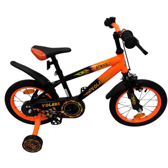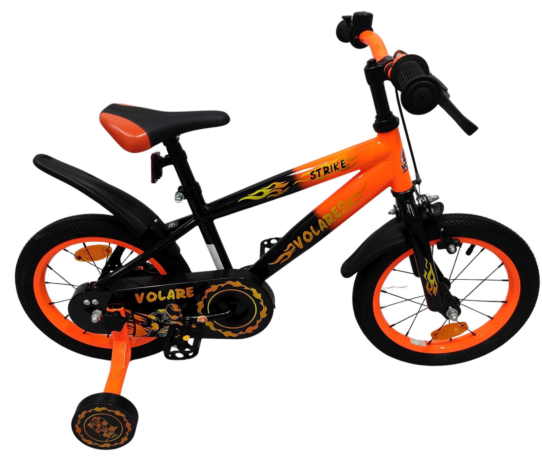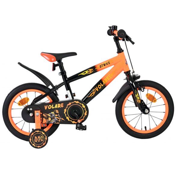 De Volare Strike 14 inch kinderfiets is een stoere fiets voor jonge racers die klaar zijn voor hun eerste grote avonturen op twee wielen. Met zijn sportieve zwart-oranje design en robuuste uitstraling is deze fiets een echte blikvanger.