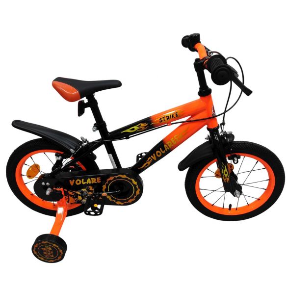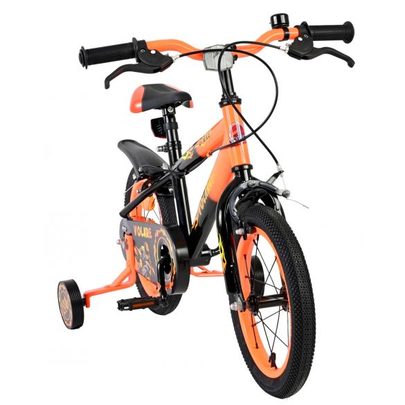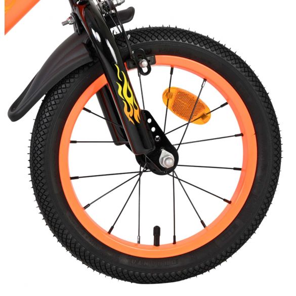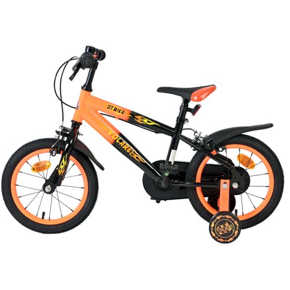 De Volare Strike 14 inch kinderfiets is een stoere fiets voor jonge racers die klaar zijn voor hun eerste grote avonturen op twee wielen. Met zijn sportieve zwart-oranje design en robuuste uitstraling is deze fiets een echte blikvanger.