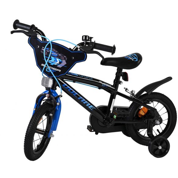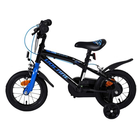 Veiligheid staat voorop! Daarom heeft deze gave fiets geen terugtraprem maar twee handremmen, een gesloten kettingkast en afneembare zijwieltjes. Daarnaast heeft de fiets reflectoren in de wielen, voor- en achterop de fiets en een leuke bel. Ook aan het comfort is gedacht. De mooie zwarte Volare fiets met blauwe accenten heeft een zacht zadel, een tijdloos design, en een uniek frame dat wel tegen een stootje kan. Om zo lang mogelijk van de fiets te kunnen genieten zijn het zadel en stuur in hoogte verstelbaar. Wordt geleverd inclusief al het montagemateriaal dat nodig is om de fiets in elkaar te zetten!