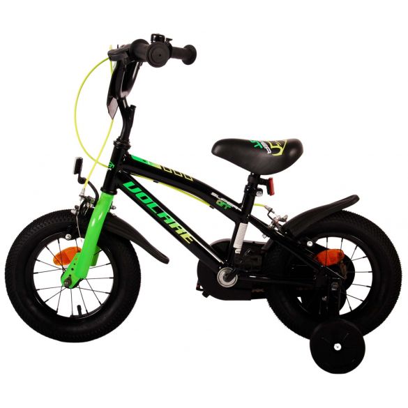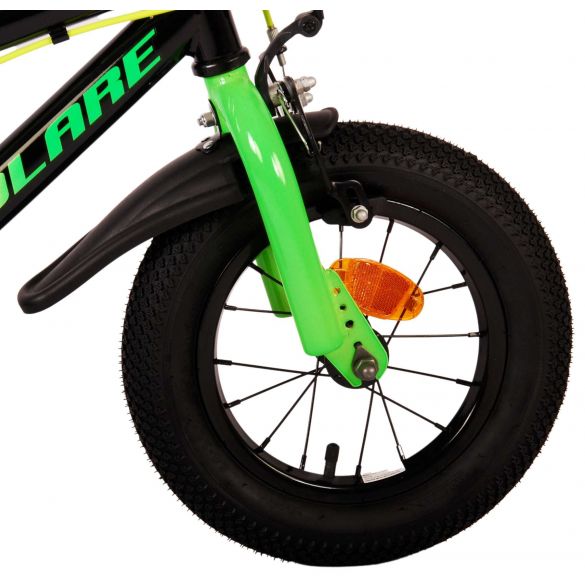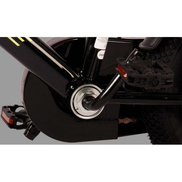 Veiligheid staat voorop! Daarom heeft deze gave fiets geen terugtraprem maar twee handremmen, een gesloten kettingkast en afneembare zijwieltjes. Daarnaast heeft de fiets reflectoren in de wielen, voor- en achterop de fiets en een leuke bel. Ook aan het comfort is gedacht. De mooie zwarte Volare fiets met groene accenten heeft een zacht zadel, een tijdloos design, en een uniek frame dat wel tegen een stootje kan. Om zo lang mogelijk van de fiets te kunnen genieten zijn het zadel en stuur in hoogte verstelbaar. Wordt geleverd inclusief al het montagemateriaal dat nodig is om de fiets in elkaar te zetten!