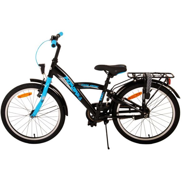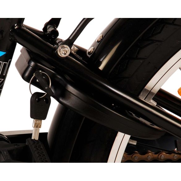 Sicherheit geht vor! Deshalb hat dieses coole Fahrrad eine Handbremse, eine Rücktrittbremse und batteriebetriebene Lichter an Vorder- und Hinterrad. Außerdem hat das Fahrrad eine schöne Klingel und Reflektoren in den Rädern. Auch an den Komfort wurde gedacht. Das schöne schwarze Volare Fahrrad mit blauen Akzenten hat einen luxuriösen weichen Sattel und extra weiche Griffe, einen praktischen Gepäckträger und einen robusten Rahmen, der einiges aushält. Außerdem verfügt das Fahrrad über einen Ständer, damit es ordentlich an seinem Platz bleibt, und ein starkes Schloss. Um möglichst lange Freude an dem Fahrrad zu haben, hat es eine extra lange Sattelstütze, damit das Fahrrad noch länger mit dem Kind mitwächst, und der Lenker ist in der Höhe verstellbar.