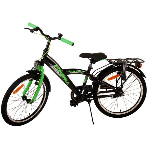 Sicherheit geht vor! Deshalb hat dieses coole Fahrrad eine Handbremse, eine Rücktrittbremse und batteriebetriebene Lichter an Vorder- und Hinterrad. Außerdem hat das Fahrrad eine schöne Klingel und Reflektoren in den Rädern. Auch an den Komfort wurde gedacht. Das schöne schwarze Volare-Fahrrad mit grünen Akzenten hat einen luxuriösen weichen Sattel und extra weiche Griffe, einen praktischen Gepäckträger und einen robusten Rahmen, der einiges aushält. Außerdem verfügt das Fahrrad über einen Ständer, damit es ordentlich an seinem Platz bleibt, und ein starkes Schloss. Um möglichst lange Freude an dem Fahrrad zu haben, hat es eine extra lange Sattelstütze, damit das Fahrrad noch länger mit dem Kind mitwächst, und der Lenker ist in der Höhe verstellbar.