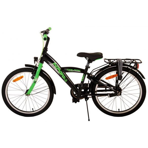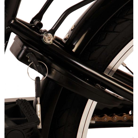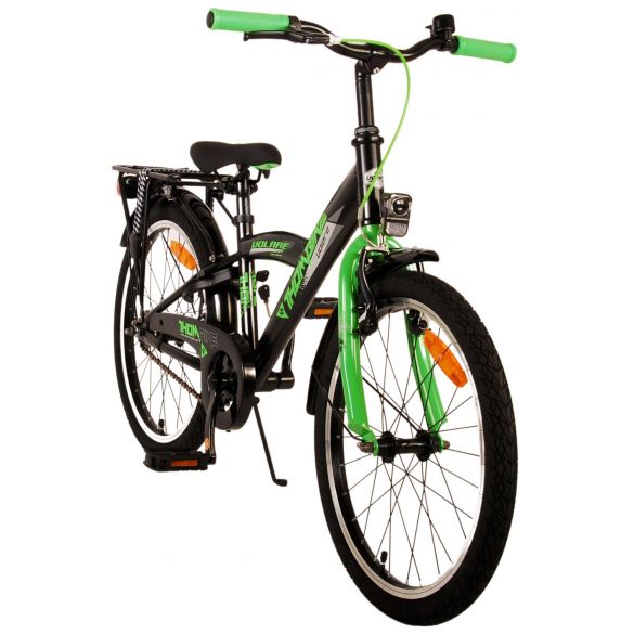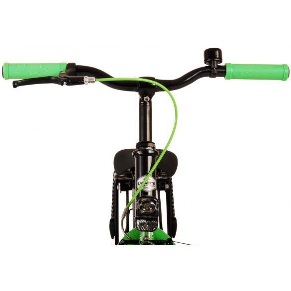 Sicherheit geht vor! Deshalb hat dieses coole Fahrrad eine Handbremse, eine Rücktrittbremse und batteriebetriebene Lichter an Vorder- und Hinterrad. Außerdem hat das Fahrrad eine schöne Klingel und Reflektoren in den Rädern. Auch an den Komfort wurde gedacht. Das schöne schwarze Volare-Fahrrad mit grünen Akzenten hat einen luxuriösen weichen Sattel und extra weiche Griffe, einen praktischen Gepäckträger und einen robusten Rahmen, der einiges aushält. Außerdem verfügt das Fahrrad über einen Ständer, damit es ordentlich an seinem Platz bleibt, und ein starkes Schloss. Um möglichst lange Freude an dem Fahrrad zu haben, hat es eine extra lange Sattelstütze, damit das Fahrrad noch länger mit dem Kind mitwächst, und der Lenker ist in der Höhe verstellbar.
