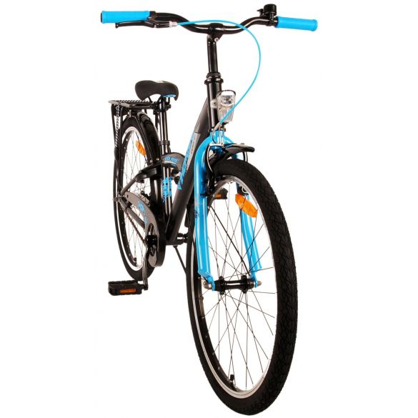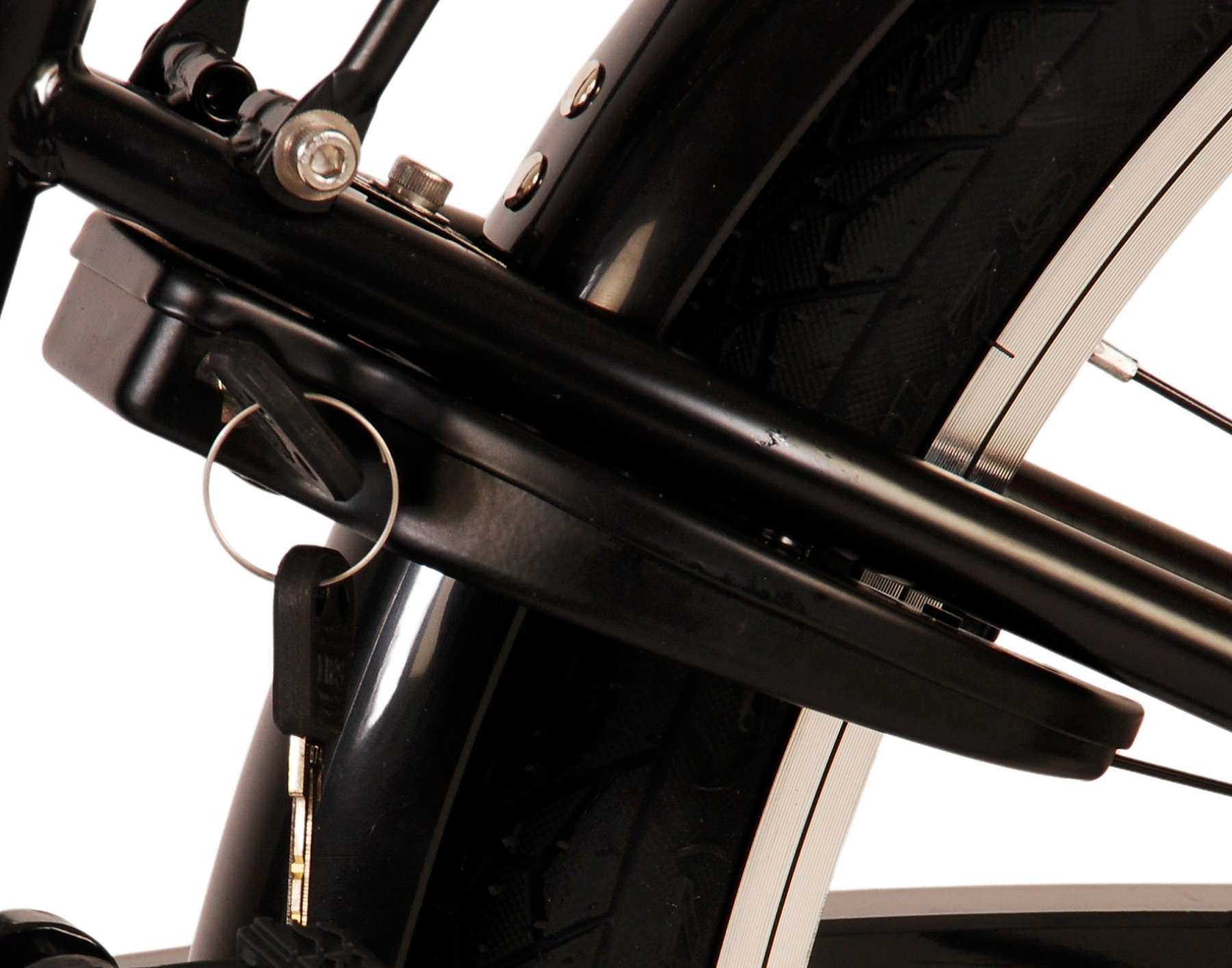 Sicherheit geht vor! Deshalb hat dieses coole Fahrrad eine Handbremse, eine Rücktrittbremse und batteriebetriebene Lichter an Vorder- und Hinterrad. Außerdem hat das Fahrrad eine schöne Klingel und Reflektoren in den Rädern. Auch an den Komfort wurde gedacht. Das schöne schwarze Volare Fahrrad mit blauen Akzenten hat einen luxuriösen weichen Sattel und extra weiche Griffe, einen praktischen Gepäckträger und einen robusten Rahmen, der einiges aushält. Außerdem verfügt das Fahrrad über einen Ständer, damit es ordentlich an seinem Platz bleibt, und ein starkes Schloss. Um möglichst lange Freude an dem Fahrrad zu haben, hat es eine extra lange Sattelstütze, damit das Fahrrad noch länger mit dem Kind mitwächst, und der Lenker ist in der Höhe verstellbar.