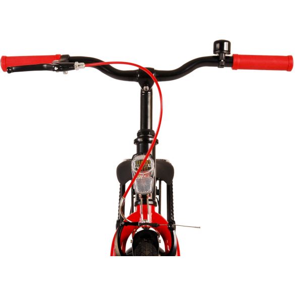 Sicherheit geht vor! Deshalb hat dieses coole Fahrrad eine Handbremse, eine Rücktrittbremse und batteriebetriebene Lichter an Vorder- und Hinterrad. Außerdem hat das Fahrrad eine schöne Klingel und Reflektoren in den Rädern. Auch an den Komfort wurde gedacht. Das schöne rote Volare Fahrrad mit blauen Akzenten hat einen luxuriösen weichen Sattel und extra weiche Griffe, einen praktischen Gepäckträger und einen robusten Rahmen, der einiges aushält. Außerdem verfügt das Fahrrad über einen Ständer, damit es ordentlich an seinem Platz bleibt, und ein starkes Schloss. Um möglichst lange Freude an dem Fahrrad zu haben, hat es eine extra lange Sattelstütze, damit das Fahrrad noch länger mit dem Kind mitwächst, und der Lenker ist in der Höhe verstellbar.