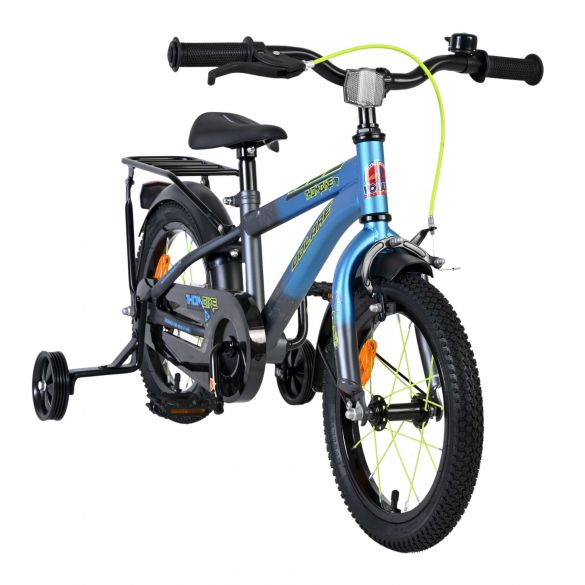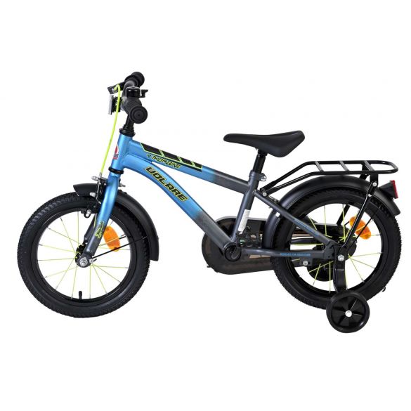 De Volare Thombike 14 inch in blauw met grijze accenten is een stoere kinderfiets met een sportieve uitstraling, perfect om veilig en met vertrouwen te leren fietsen. Dankzij de stevige afwerking en het frisse design is dit een echte favoriet voor jonge rijders.
