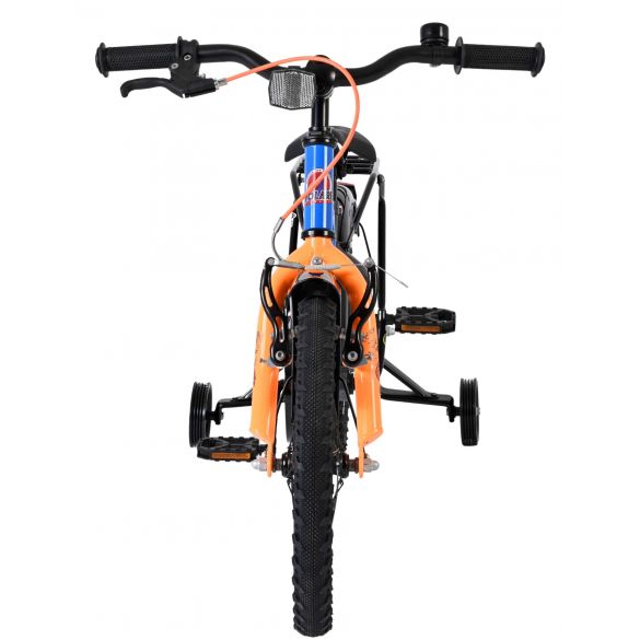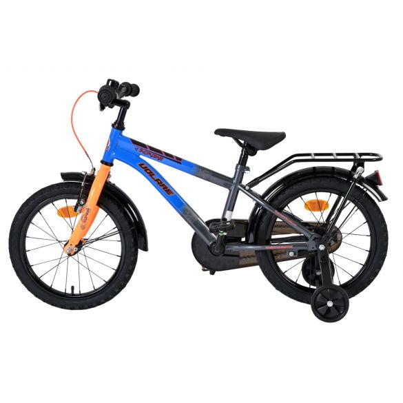 De Volare Thombike 16 inch kinderfiets in blauw met oranje details is perfect voor jonge fietsers die houden van een stoere en moderne uitstraling. Deze degelijke kinderfiets is voorzien van een dichte kettingkast, waardoor de bewegende onderdelen veilig zijn afgeschermd en de fiets minder onderhoud vraagt. Met de afneembare zijwielen kan ieder kind stap voor stap leren fietsen en later moeiteloos overstappen naar zelfstandig fietsen.