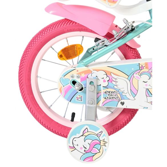 De Volare Unicorn 14 inch is de ideale combinatie van veiligheid, comfort en fantasierijke Unicorn-stijl – perfect voor kleine fietsers die houden van kleur en plezier.