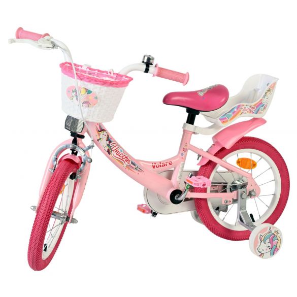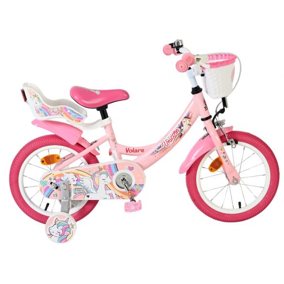 De Volare Unicorn 14 inch is een kleurrijke en speelse meisjesfiets voor kinderen die dol zijn op Unicorns en avontuur. Deze prachtige roze fiets is rijk versierd met vrolijke Unicorn- en regenboogdetails, waardoor iedere rit een feestje wordt.