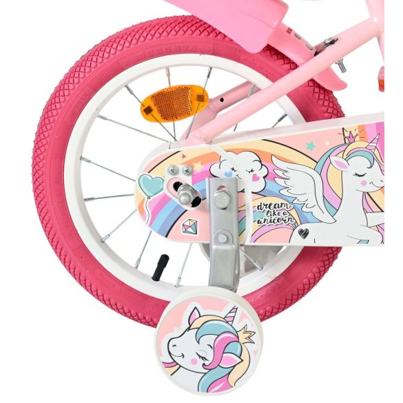 De Volare Unicorn 14 inch is de perfecte combinatie van veiligheid, comfort en magische Unicorn-stijl – ideaal voor kleine fietsers die houden van kleur en fantasie.