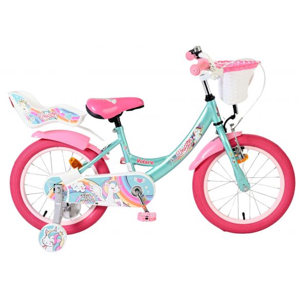 De Volare Unicorn 16 inch kinderfiets is een droomfiets voor kinderen die gek zijn op kleur, fantasie en alles wat met Unicorns te maken heeft. Deze prachtige groene fiets is versierd met vrolijke Unicorn-details en heeft een speelse uitstraling die elke rit bijzonder maakt.