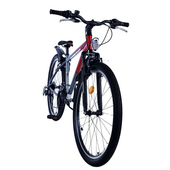 Sicherheit steht an erster Stelle! Deshalb hat dieses robuste Fahrrad 2 Handbremsen und keine Rücktrittbremse! Außerdem hat das Fahrrad eine 21-Gang-Shimano-Schaltung mit Revoshifter, Reflektoren in den Rädern, Reflektoren vorne und hinten am Fahrrad, eine Klingel, batteriebetriebene Lichter vorne und hinten (STVO getestet). Der geneigte Lenkervorbau ermöglicht eine bessere Sicht auf die Straße, ist aber nicht höhenverstellbar. Auch an den Komfort wurde gedacht. Das schöne satingraue Volare mit roten Akzenten hat einen bequemen, weichen Sattel, einen Ständer, damit das Fahrrad schön aufrecht steht, und robuste, extrabreite Reifen. Damit Sie möglichst lange Freude an Ihrem Fahrrad haben, ist es mit einer extra langen Sattelstütze ausgestattet, die es noch länger werden lässt.