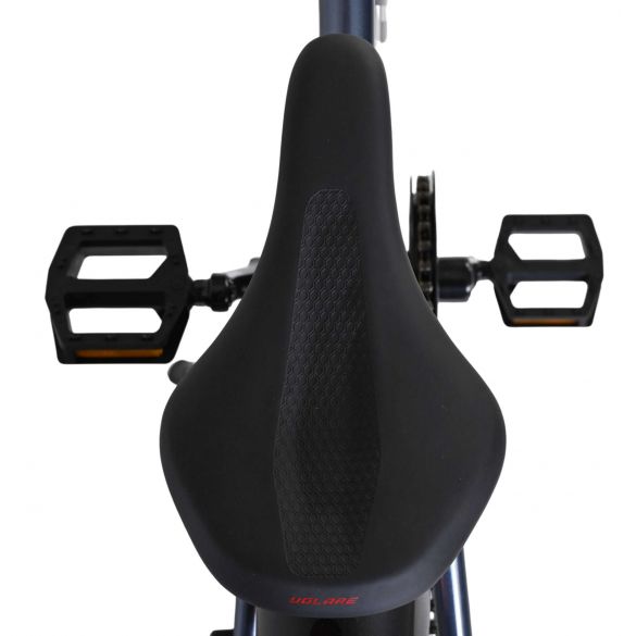 Veiligheid staat voorop! Daarom heeft deze gave fiets zowel een handrem als terugtraprem! Daarnaast heeft de fiets Nexus 3 versnellingen van shimano met microshifters, reflectoren in de wielen, reflectoren voor en achter op de fiets, een bel, verlichting op batterijen voor en achter. De gekantelde stuurpen zorgt voor een beter zicht op de weg, maar is daardoor niet in hoogte verstelbaar. Ook aan het comfort is gedacht. De mooie satijn grijze Volare fiets met rode accenten heeft een comfortabel zacht zadel, een standaard zodat je fiets netjes blijft staan, en stoere extra brede banden. Om zo lang mogelijk van de fiets te kunnen genieten heeft de fiets een extra lange zadelpen waardoor de fiets nóg langer meegroeit.