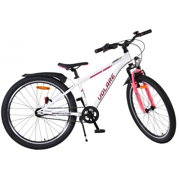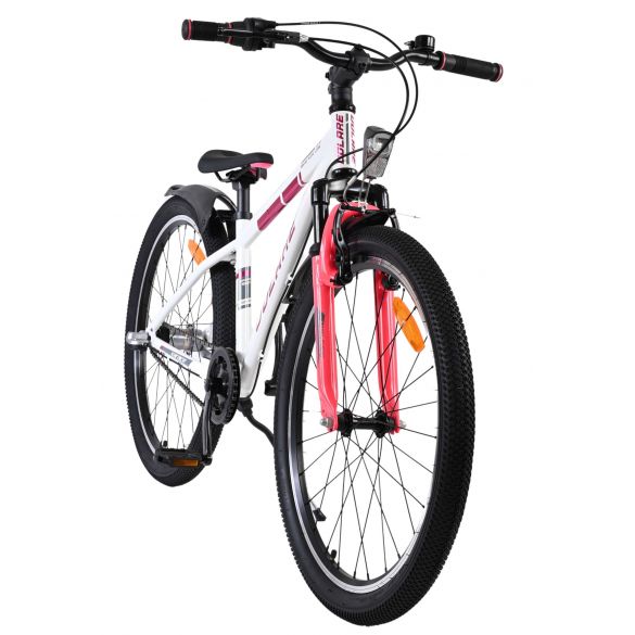 De Volare XC Race 24 inch kinderfiets is de ideale keuze voor jonge fietsers die sportiviteit en stijl willen combineren. Met haar frisse witte frame en roze accenten straalt deze fiets snelheid en elegantie uit, perfect voor dagelijks gebruik.
