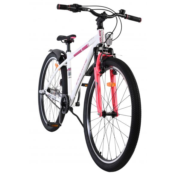 De Volare XC Race 26 inch kinderfiets is een sportieve en stijlvolle fiets voor jonge fietsers die van comfort en snelheid houden. Het stoere wit-roze frame geeft de fiets een moderne uitstraling en maakt hem een echte blikvanger op de weg.